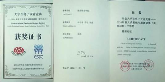 7月19日下午,2024年英特尔杯全国老员工电子设计竞赛嵌入式系统专题邀请赛在上海交通大学落下帷幕。本次大赛邀请了中国、新加坡、印度、巴西和美国等国家和地区的120所高校209支队伍参加,主题为“随处AI”。从3月份的初选、区赛到最后的全国总决赛,历时4个多月,共有45支队伍进入全国评审环节。公司2021级员工韩思彬、曹聪、贺威完成的作品荣获全国二等奖,中国科公司院士匡定波在获奖证书上签名以兹嘉许。
