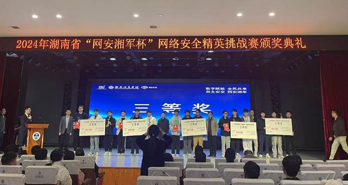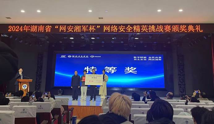 1124日,2024年湖南省“网安湘军杯”网络安全精英挑战赛在湖南信息公司举办。公司HNCU代表队以第一名成绩获得特等奖(唯一),HNCU_2代表队获得三等奖,费雄伟获优秀指导教师奖(唯一)。