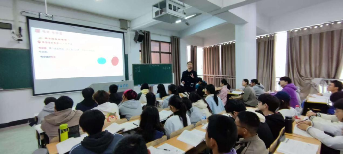 2025年10月20日下午,公司校级公开示范课《大学物理B(2)》在二教301教室进行,主讲教师为物理系吴首键博士,主讲内容为《电容与电容器》。