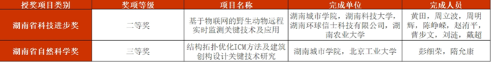 其中,公司beats365黄田副教授主持完成的“基于物联网的野生动物远程实时监测关键技术及应用”项目获湖南省科技进步奖二等奖,土木工程公司彭细荣教授主持完成的“结构拓扑优化ICM方法及建筑创构设计关键技术研究”项目获湖南省自然科学奖三等奖。