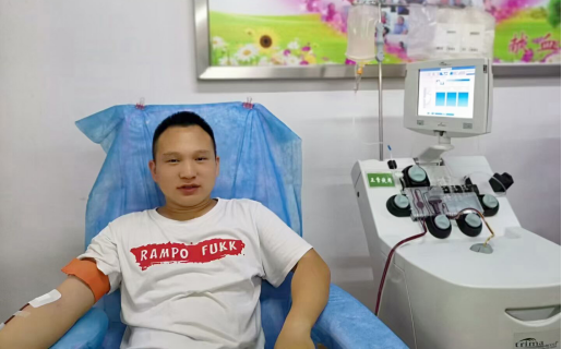 走进献血的房间,在躺椅上坐好后,采血医护人员将针扎进青色的静脉血管,暗红色的血液就顺着输液管快速流向离心机,一个多小时后,一次献血就完成了。