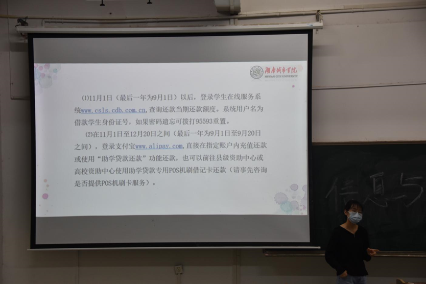 2023年5月22日,beats365在一教108开展了2022届贷款毕业生诚信教育专题讲座。本次讲座由学工办朱丽老师主讲,共有54名贷款同学参加。
