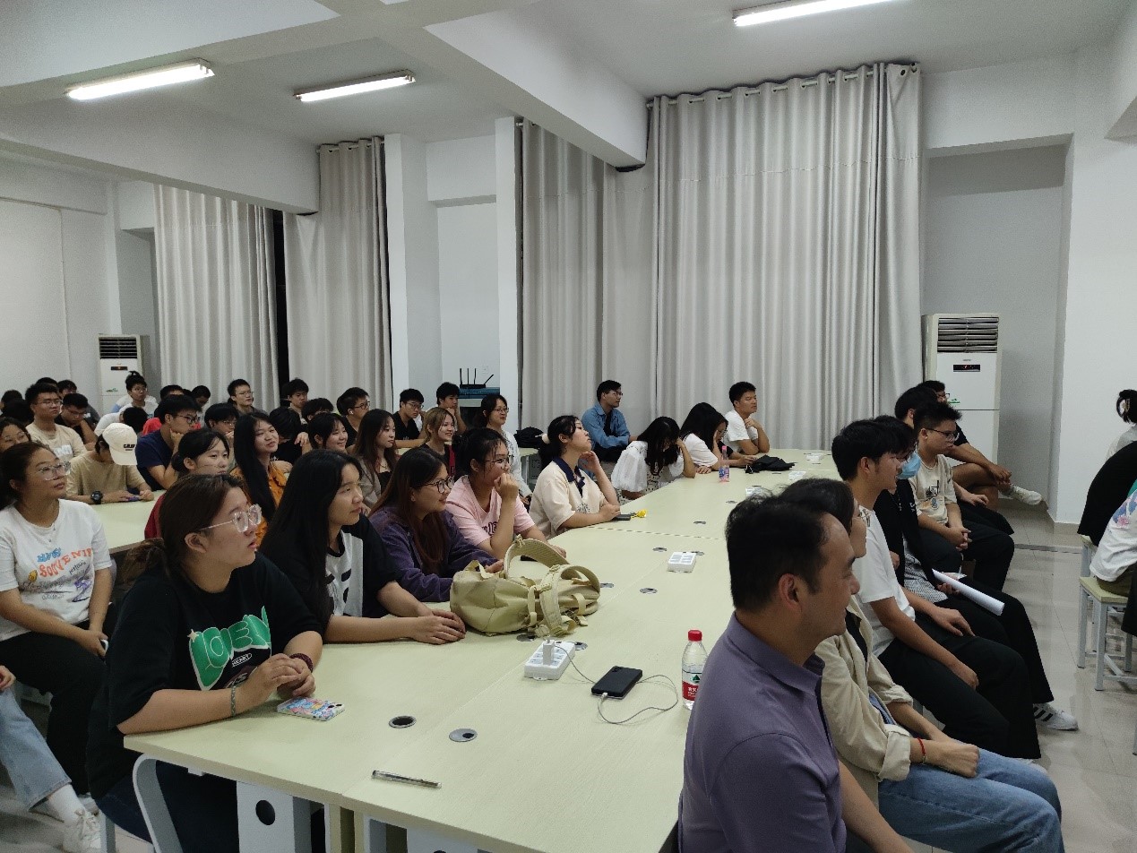 交流会由蒋冬初经理主持,邓杨保副经理、计算机网络系主任费雄伟、计算机科学系主任汪彦、实验实训中心主任何建新、网络工程专业2206101、102班及计算机科学与技术专业员工代表近100名同学参加。