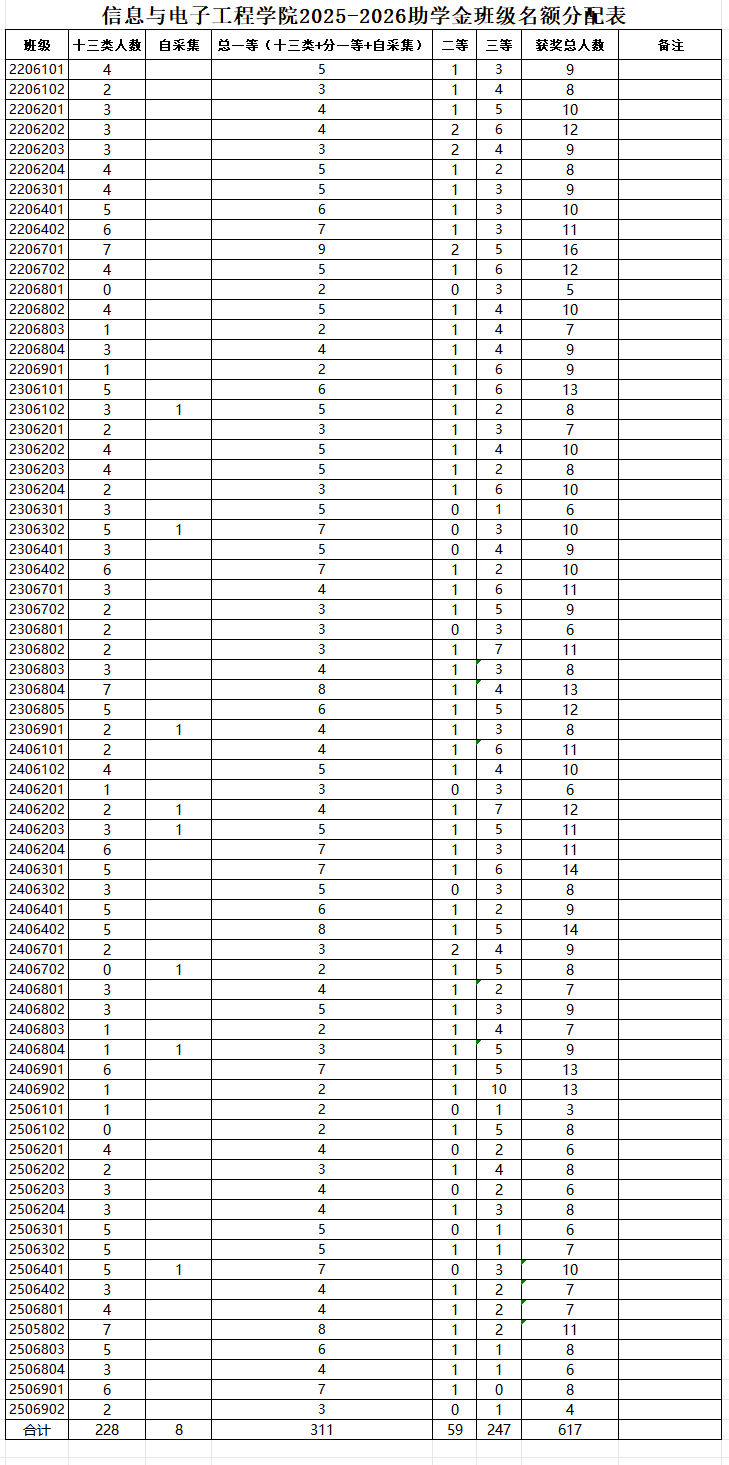 beats3652025-2026学年国家助学金班级名额分配表