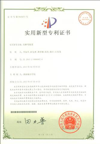 刘 杰、熊静平、胡伟明同学获得专利——门禁视频信号传输装置
