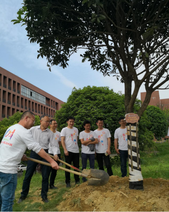 会后,全体师生在湖南智慧城市研究院经理李梦醒老师的带领下参观智慧城市研究院,在蒋冬初老师的带领下参观图书馆教学成果展,并一同游览参观校园,师生合影留念后一起种植员工树。班主任蒋冬初和师生一同植树并揭幕,祝福公司枝繁叶茂,祝愿师生情谊绵长。