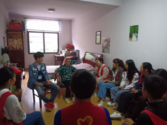 志愿者们陪老人聊天